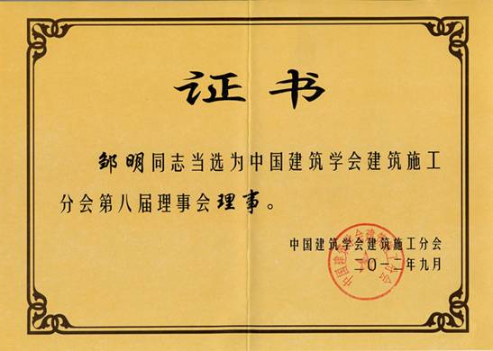 從節前在武漢召開的中國建筑學會建筑施工分會2012年年會獲悉,公司總經理鄒明同志當選為中國建筑學會建筑施工分會第八屆理事會理事。