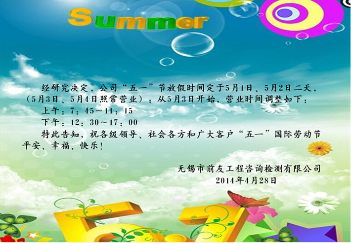 關于“五一”節放假及節后營業時間調整的公告