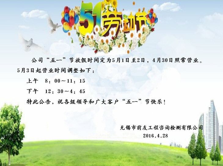 | 關于“五一”節(jié)放假及節(jié)后營業(yè)時間調(diào)整的公告 | ||