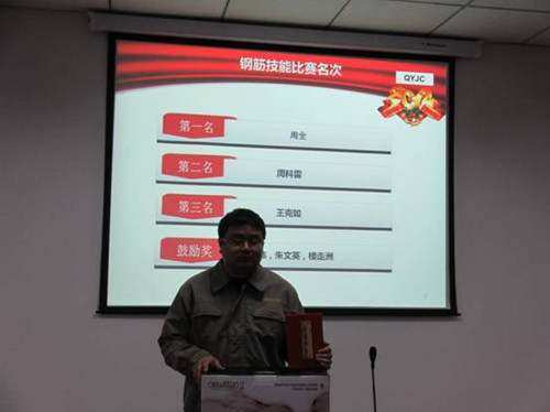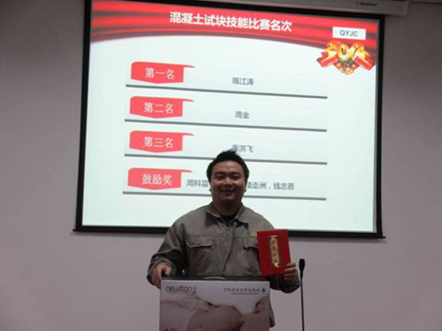 歡歡喜喜送玉兔,熱熱鬧鬧迎騰龍! 新年伊始,2月4日下午我公司順利舉行了檢測操作技能比賽(砼試塊、鋼筋),比賽選手為我公司檢測員,比賽由公司技術負責人王大遠、檢測室主任孟巍巍以及主任助理周惠擔任評委。選手們個個斗志昂揚、充滿激情,技能比武,熱浪不斷掀起,每位選手都不甘示弱。砼試塊檢測比賽過程中,選手們嚴格按照規范進行操作——開機預熱、測量試塊尺寸、輸入任務單編號、選擇量程和加載速度以及進行最后的數據處理,表現的有條不紊。鋼筋檢測過程中,選手們在稱重和量斷后標距這兩個環節中尤為認真,生怕讀錯數據影響最終的檢測結果。比賽一結束,選手們互相交流經驗,操作的注意事項等。 經過激烈的角逐,砼試塊檢測的前三名分別是老員工陳江濤、周全以及新進員工董洪飛。周全、周科雷、王克如分獲鋼筋檢測的一二三名。 賽后大家總結了自己操作過程中的不足互相取長補短,鞏固了常規材料檢測項目的知識,為2012年的檢測工作開了個好頭。龍年,吉祥年,相信前友檢測公司會有豐瑞成績!