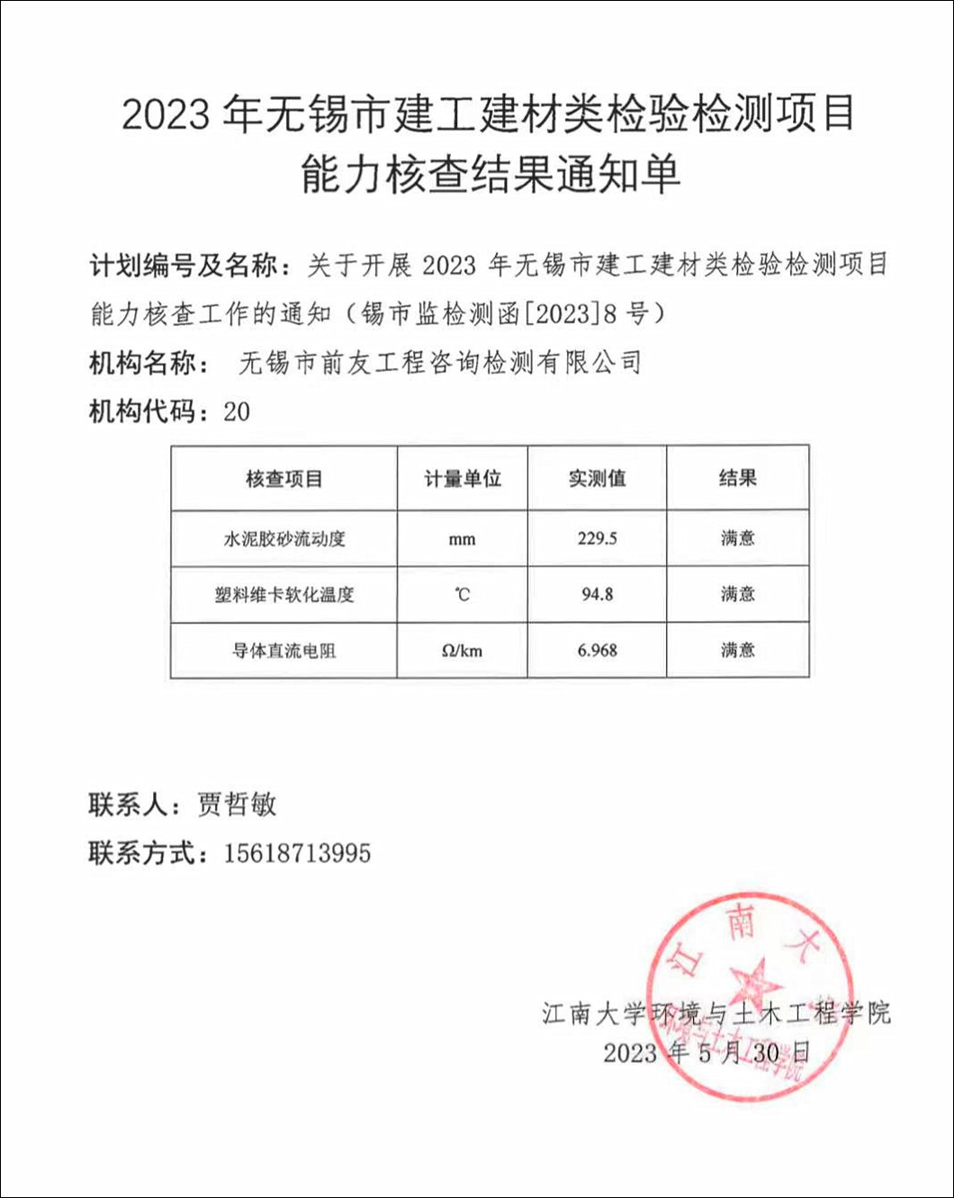 為加強對我市資質認定檢驗檢測機構的事中事后監管,提升檢驗檢測機構技術能力水平,根據《檢驗檢測機構監督管理辦法》第十八條并結合我市實際,無錫市市場監督管理局于5月份在全市資質認定檢驗檢測機構中開展水泥膠砂流動度、塑料維卡軟化溫度、電線電纜導體直流電阻等參數的檢測能力核查工作。 本次能力核查工作委托江南大學為技術支持單位,負責能力核查作業指導書制定、樣品準備、結果匯總、統計分析等工作。 水泥膠砂流動度、塑料維卡軟化溫度參數測定結果采用Z比分數進行判定。|Z|≤2,判定為滿意值,說明機構目前的檢測能力狀況良好;2<|Z|<3,判定為可疑值,說明機構目前的檢測能力狀況存在一定問題;|Z|≥3,判定為不滿意值或離群值,說明機構目前的檢測能力狀況不理想,存在較大問題。電線電纜導體直流電阻按照與標準物質證書指定值進行比對,在證書規定的允許誤差范圍內為滿意結果,不在證書規定的允許誤差范圍內為不滿意結果。本次能力核查中,無錫市前友工程咨詢檢測有限公司獲得滿意結果。