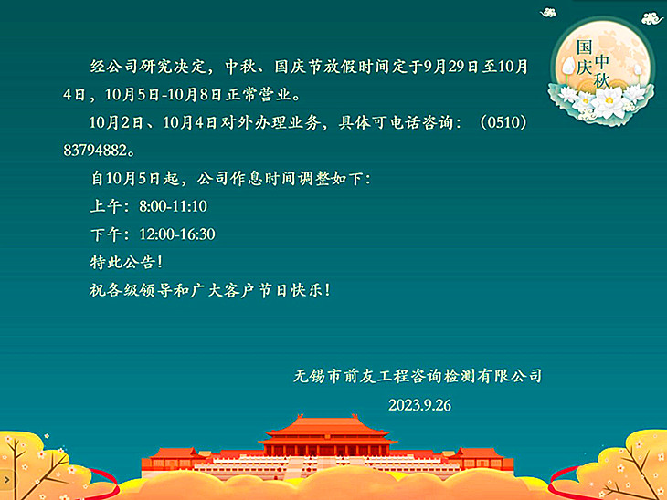 | 關(guān)于中秋、國慶放假及節(jié)后營(yíng)業(yè)時(shí)間調(diào)整的公告 | ||