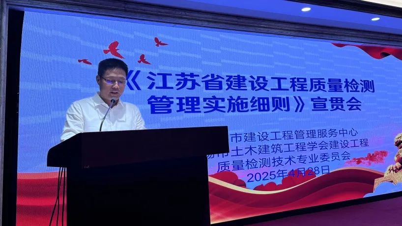 為深入貫徹落實《江蘇省建設工程質量檢測管理實施細則》(蘇建規字〔2025〕1號)文件要求,規范建設工程檢測行為,保障工程質量安全,4月28日,無錫市建設工程管理服務中心、無錫市土木建筑工程學會建設工程質量檢測技術專業委員會聯合舉辦宣貫會,市住建局翟衛武副局長出席會議指導。各市(縣)區質量監督機構相關負責人以及我市工程質量檢測機構的機構主要管理人員約150人參加了此次會議。公司總經理、技術負責人、質量負責人參加了宣貫培訓。